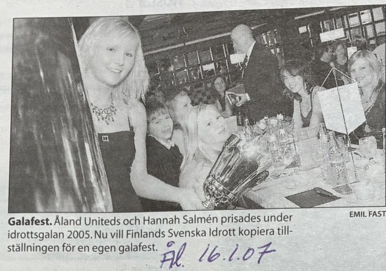 Den tredje februari 2007 Ă€gde den första finlandssvenska idrottsgalan rum. Detta var en fest med stora ambitioner och Ă€nnu större förvĂ€ntningar frĂ„n Svenskfinland. Galan var inspirerad av Svenska idrottsgalan och Ă lands idrottsgala som hade kommit tidigare.đ„