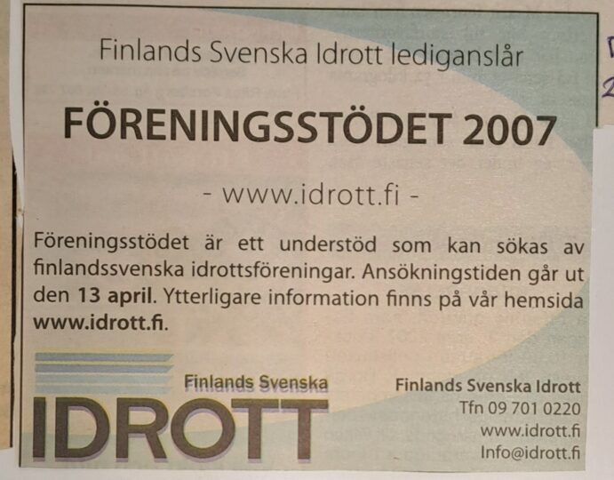 År 2007 började Finlands Svenska Idrott med en ny sorts verksamhet. Det var nämligen det året som föreningsstödet började!